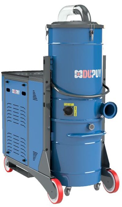 Suction is developed by a powerful side channel blower with direct coupling between the